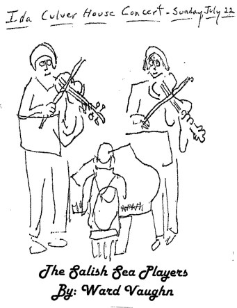 I just received a Doodle of the Salish Sea Players drawn by Ward Vaughn. Mr. Vaughn is a resident of the Ida Culver House-Broadview and he is a young 97 years old. He was at our concert in July 2012 and he made this little doodle of us. It was printed in the monthly newsletter. I was thrilled to see this and just wanted to share!